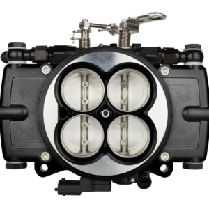 - High-flow aluminum throttle body with four 45mm diameter throttle bores to increase the air flow for additional horsepower gains and large CM engines.