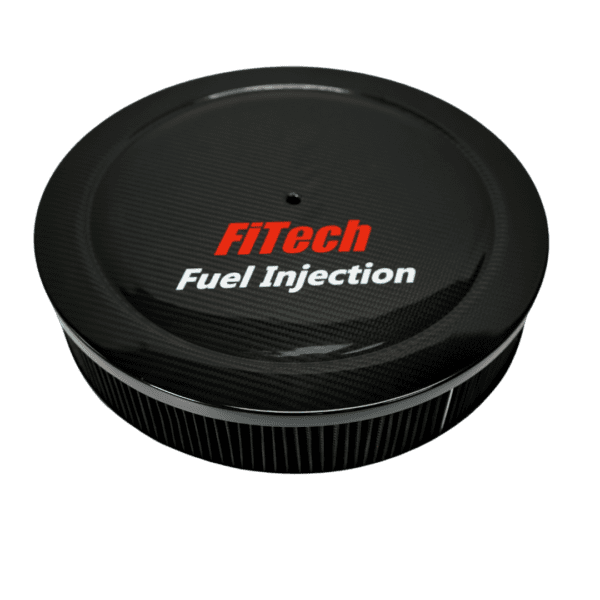 The FiTech Fuel Injection Carbon Fiber Gloss Top 2 Inch Tall Air Filter Assembly with Hardware is an essential component for maximizing your engine’s performance. The 14-inch diameter ensures compatibility with a wide range of vehicles, from classic muscle cars to daily restomods.