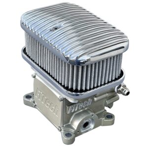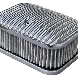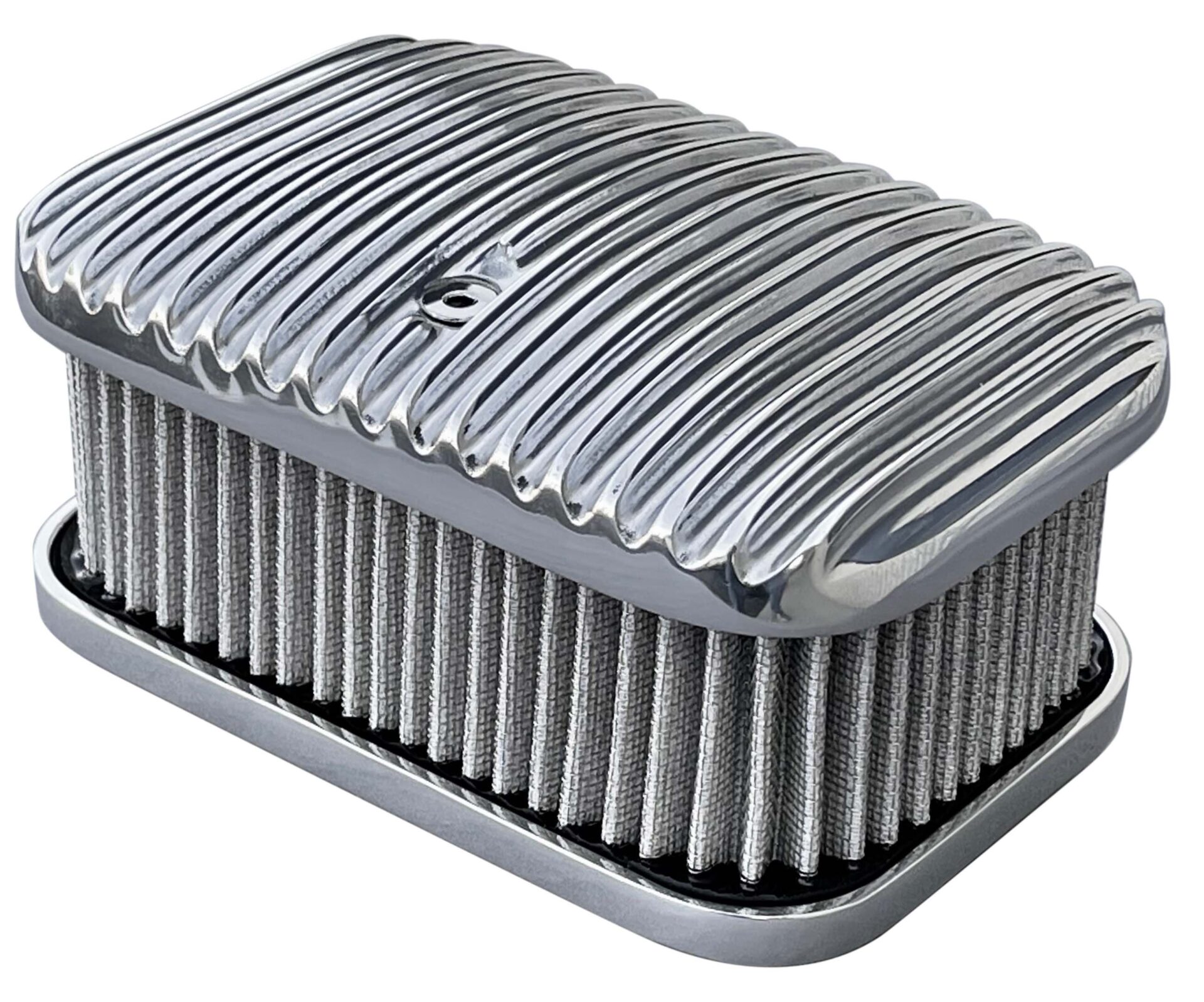 42401 FiTech 3×2 D Shaped Air Filter Assembly Polished, Finned Top With Hardware