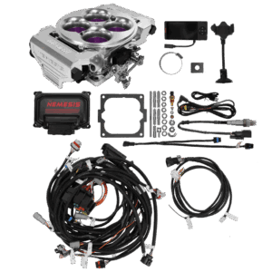 The Nemesis is a complete EFI system. Each kit comes fully equipped with 8 injectors, dual IAC motors, a primary shaft TPS, 3-bar TMAP compatibility, ECU, wiring harness, and all essential sensors—everything required to control up to 1600 HP* with confidence.