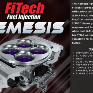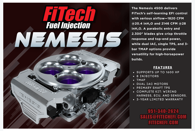 FiTech Fuel Injection is excited to announce that the Nemesis 4500 1600 HP EFI System is now shipping. Engineered for high-horsepower applications and built with real-world performance in mind, the Nemesis combines race-ready capabilities with a high-flow throttle body engineered for both drivability and wide-open-throttle domination.