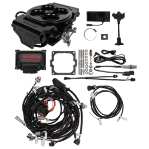 The Nemesis 4500 EFI System delivers FiTech’s self-learning EFI technology with massive airflow and full kit capability. Built for serious horsepower builds, this system flows 1820 CFM @ 20.4 inH₂O and 2146 CFM @ 28 inH₂O to fuel up to 1600 HP. With its parabolic entry and 2.300″ throttle blades, the Nemesis offers crisp throttle response at low speeds and brutal top-end power for race and high-performance street engines.