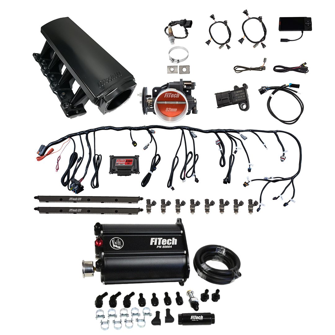 The optional transmission control feature is suitable for 4L60, 4L65, 4L70, or 4L80 GM transmissions. FiTech LS EFI 500HP fuel injection systems with transmission controller provide impressive power and performance, while allowing you to save a little green for your next tires.