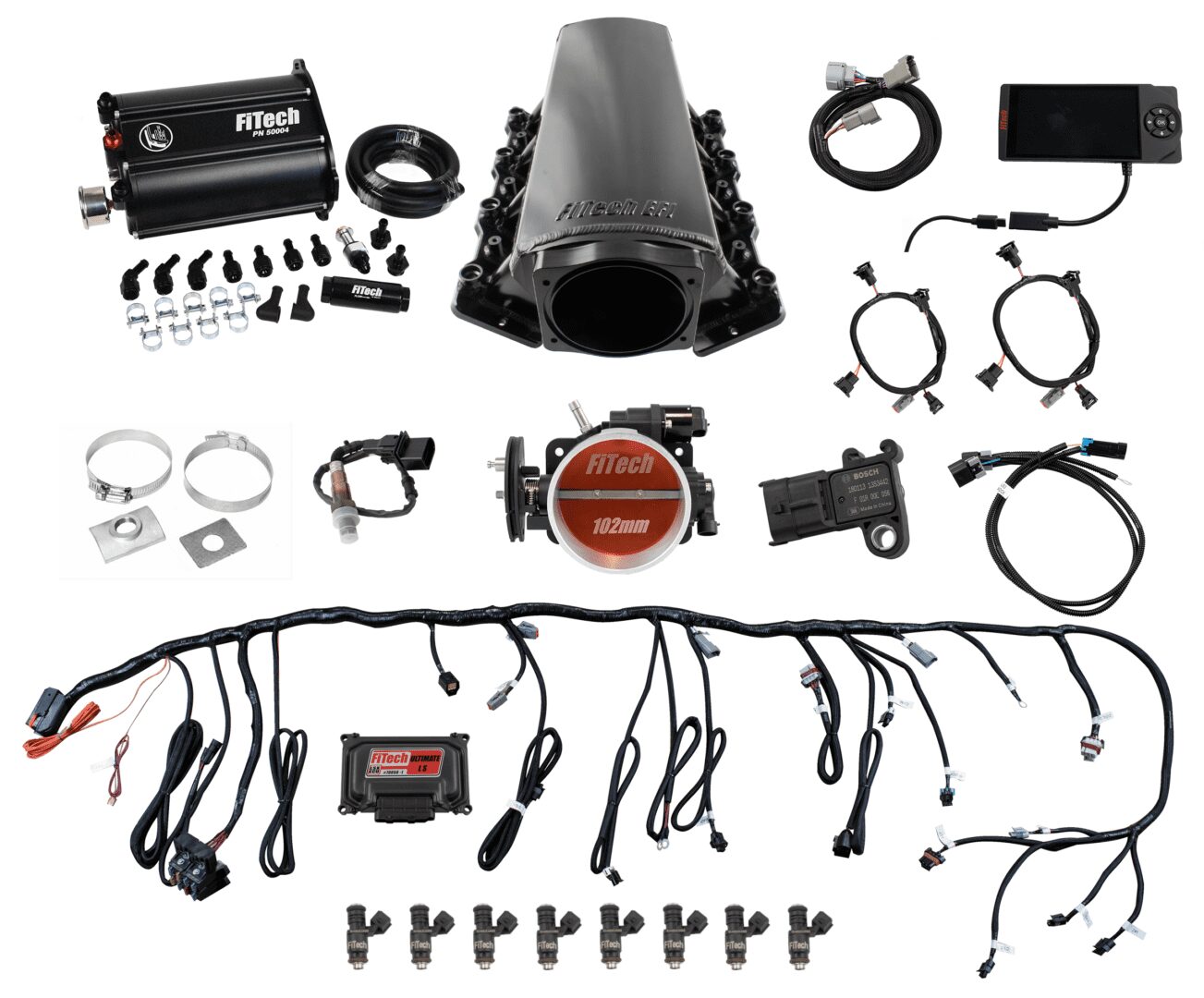 The optional transmission control feature is suitable for 4L60, 4L65, 4L70, or 4L80 GM transmissions. FiTech LS EFI 500HP fuel injection systems with transmission controller provide impressive power and performance, while allowing you to save a little green for your next tires.