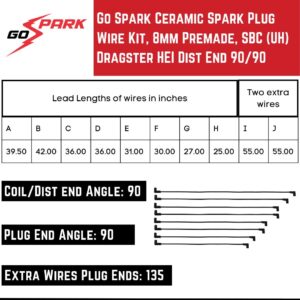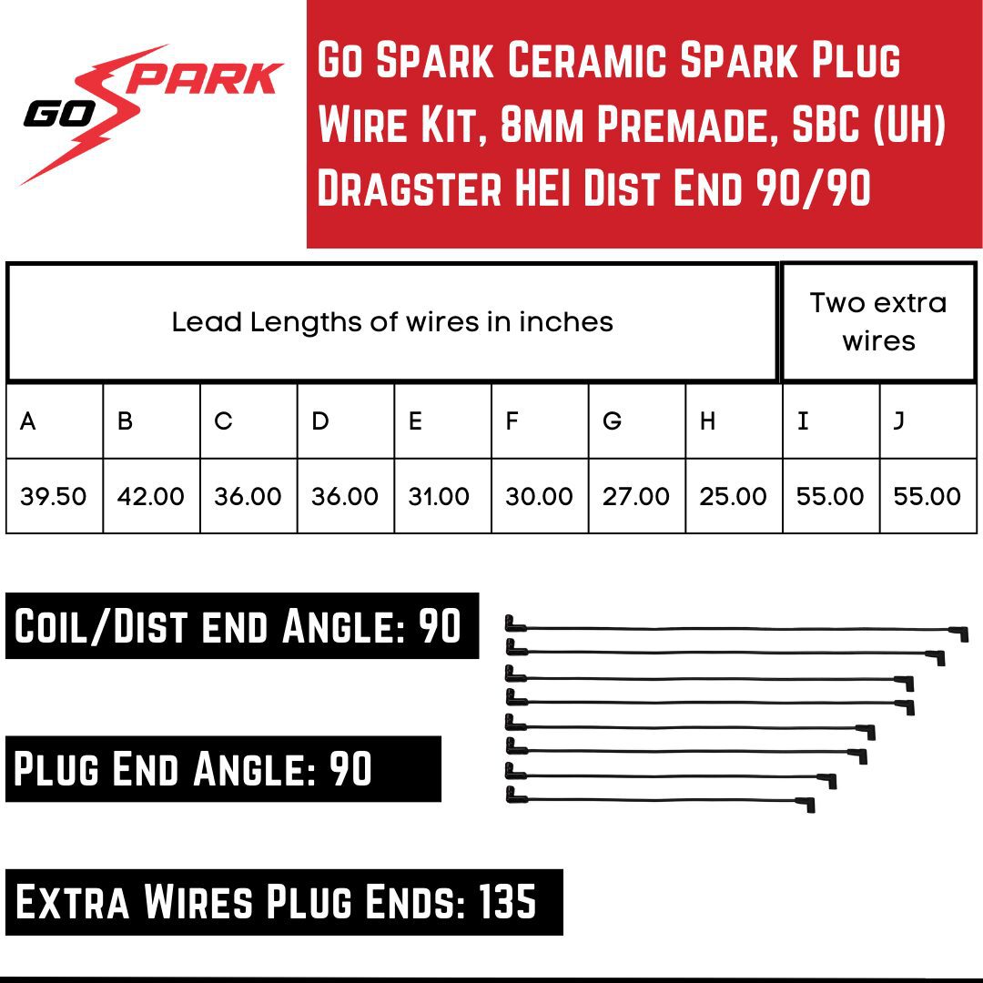 90018 Go Spark Ceramic Spark Plug Wire Kit, 8mm Premade, SBC (UH) Dragster HEI Dist End 90/90