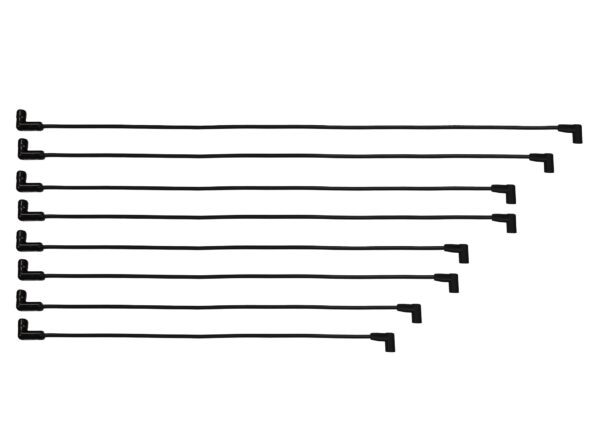 Package includes: 8 plug wires factory built with noted ends pre-installed on spark plug end, 2 aditional wires 55 inch long with 135 degree spark plug end pre-installed and no dist end installed. 1 aditional bare wire 55 inch long with no spark plug end pre-installed and no dist end pre-installed. 10 loose HEI male boots and terminals, 10 loose female boots and terminals , instructions, white box packaging, label with description/part number.