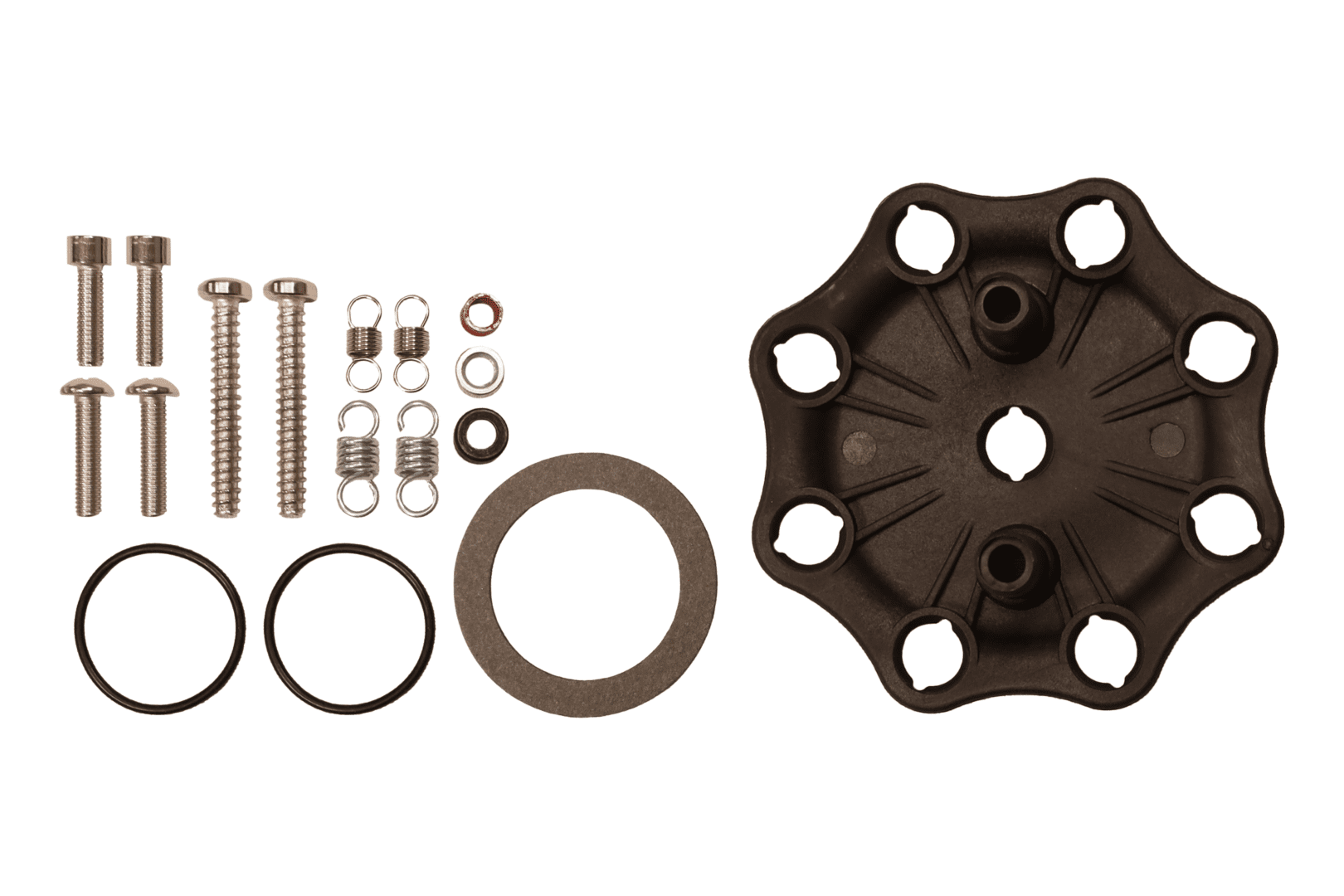 The cap and rotor are molded in high-quality 30% glass filled polyester (PBT) that offers both high impact and dielectric strength while resisting carbon tracking. The cap contacts are brass and the rotor spring is stainless steel for long-term maximum conductivity.